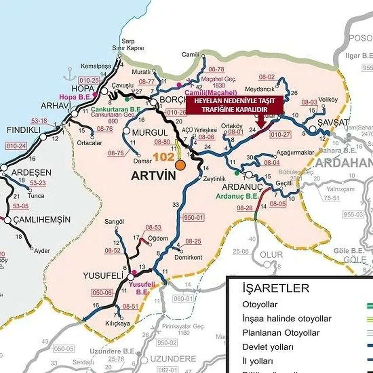 Artvin-Şavşat-Ardahan Devlet Yolu’nun 32. kilometresinde 27 Nisan 2025 tarihinde meydana gelen heyelan nedeniyle yol araç trafiğine kapatıldı.