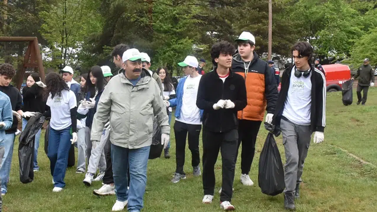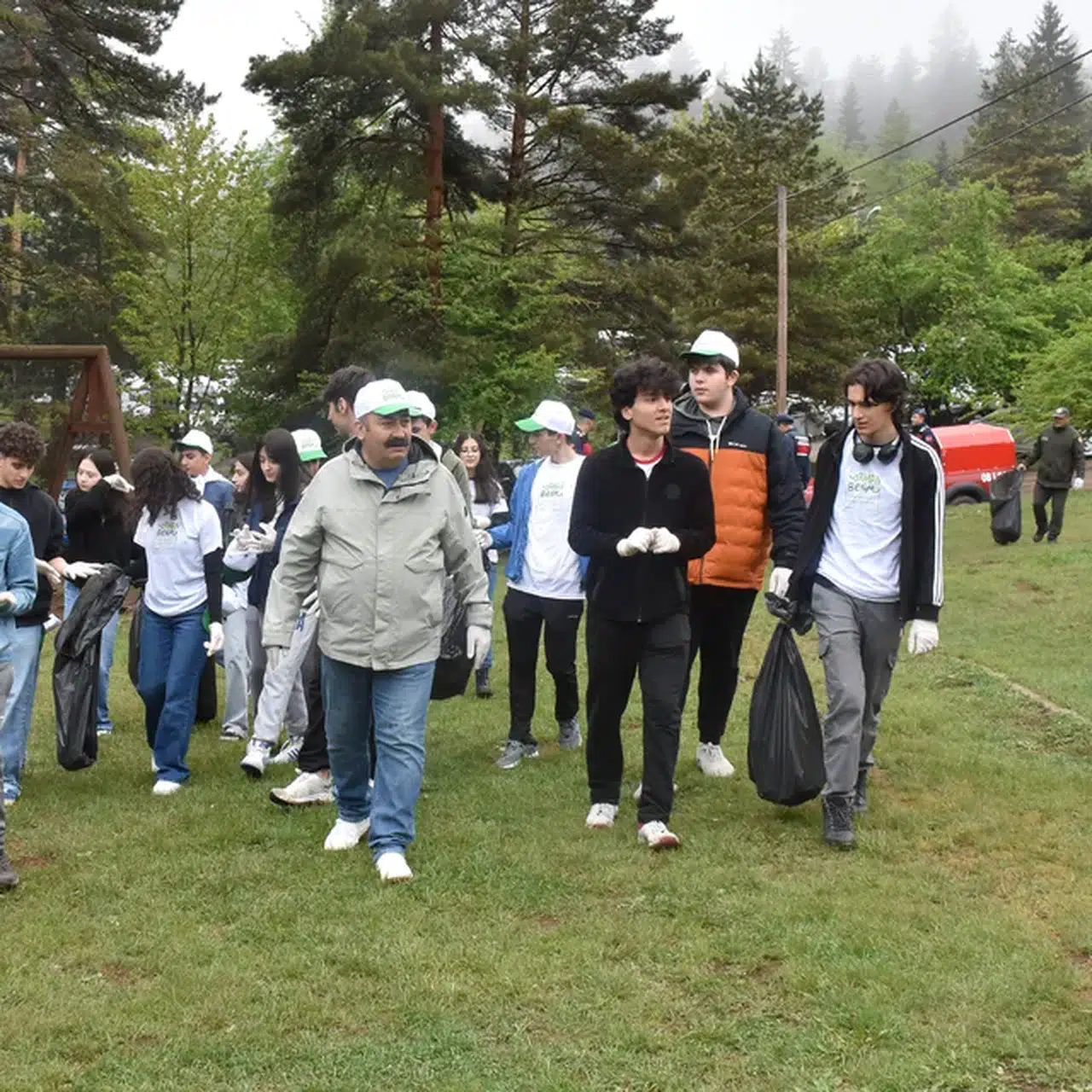 Kafkasör Yaylası'nda mesire alanında düzenlenen etkinlikte katılımcılar, gruplar halinde çevredeki çöpleri topladı.