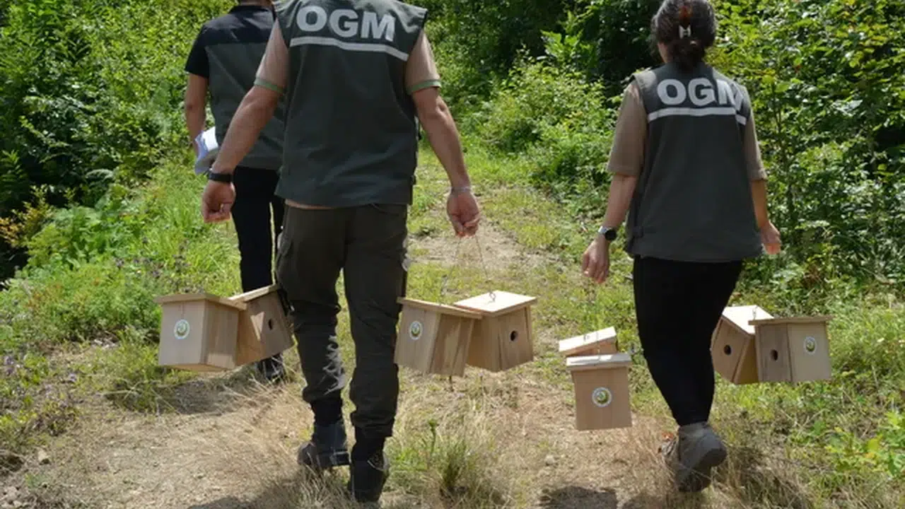 Artvin Orman Bölge Müdürlüğünce zararlı böceklere karşı yürütülen mücadele kapsamında ormanların çeşitli noktalarına suni kuş yuvaları asılıyor.