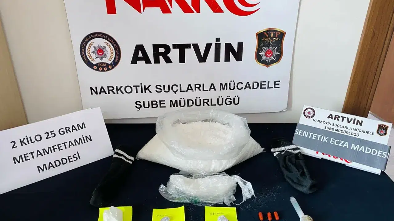 Yapılan aramada, aşağıdaki maddeler yakalandı: 2 kilo 25 gram Metamfetamin 3 adet Sentetik Uyuşturucu 1 adet uyuşturucu kullanma aparatı