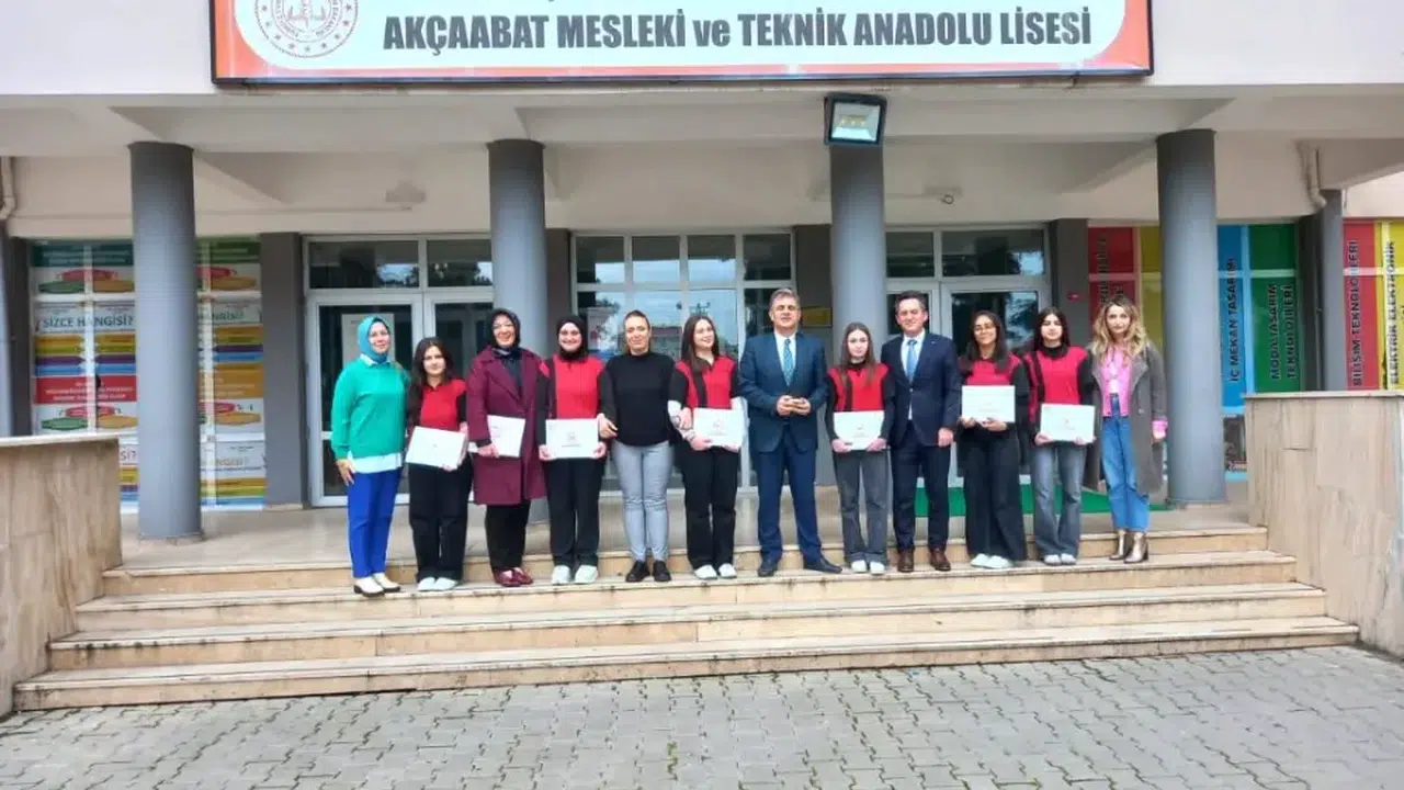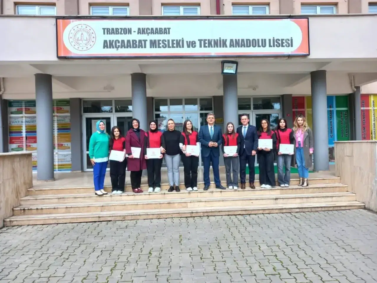 Akçaabat Mesleki ve Teknik Anadolu Lisesi’nde düzenlenen törene katılan Destek Hizmetleri Başkanı Dr. Erdem Şen, Çocuk Gelişim Uzmanı Hatice Batu ile öğrenciler Busenaz Dursun, Sudenaz Kantarcı, Nazra Ravza Kahraman, Ebrar Kuvvet, Elanur Sürol ve Pınar Birinci’ye teşekkür belgelerini takdim etti. Öğrencilerin etkinliğe kattığı enerji ve yaratıcılık, katılımcılar tarafından büyük takdir toplamıştı.