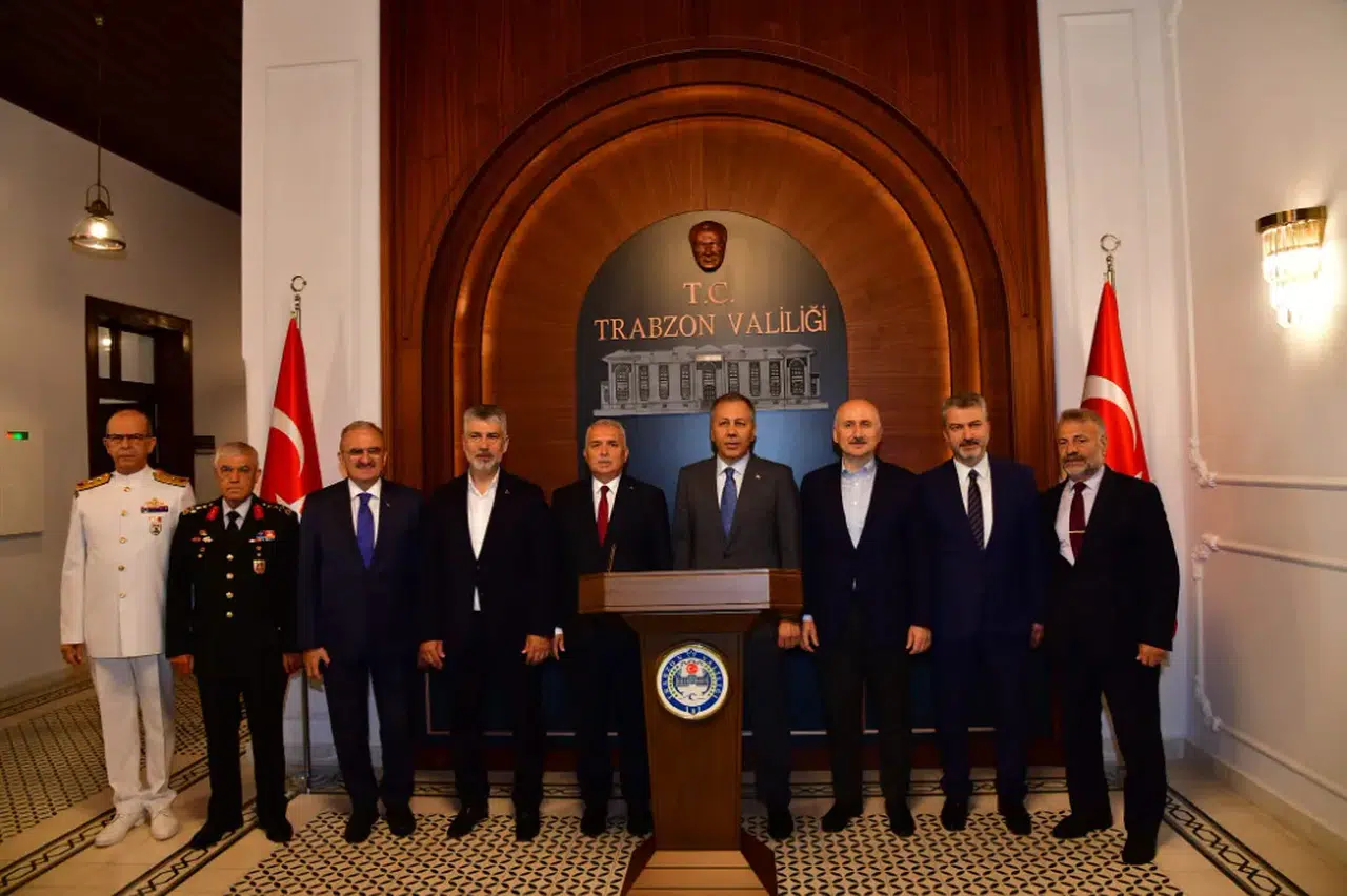 Ziyarette Bakan Yerlikaya’ya, İçişleri Bakan Yardımcısı Münir Karaoğlu, Jandarma Genel Komutanı Orgeneral Arif Çetin, Sahil Güvenlik Komutanı Tümamiral Ahmet Kendir, Trabzon Milletvekilleri Adil Karaismailoğlu ve Yılmaz Büyükaydın, AK Parti Trabzon İl Başkanı Sezgin Mumcu ve diğer ilgililer eşlik etti.