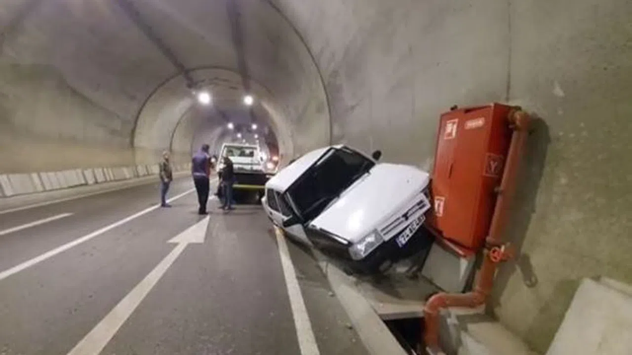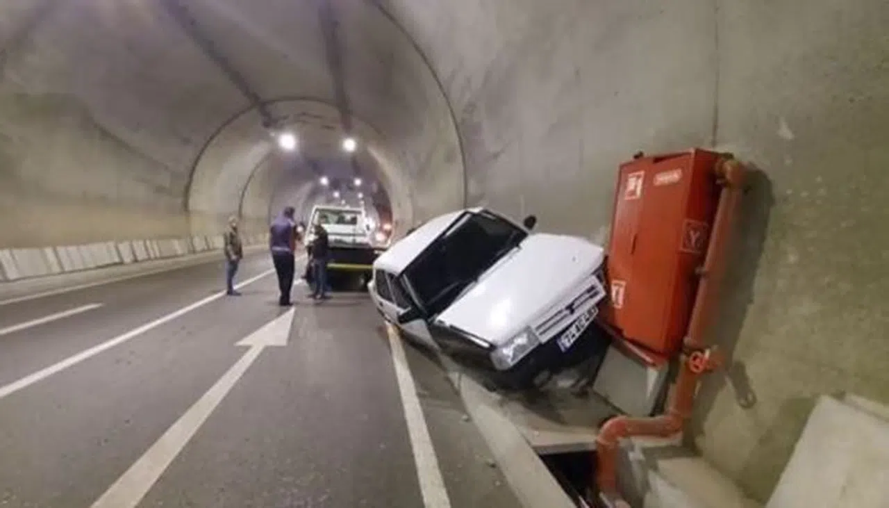 Tüneli içinde meydana gelen kazada bir otomobil direksiyon hakimiyetini kaybetmesi sonucunda trafik kazası meydana geldi.