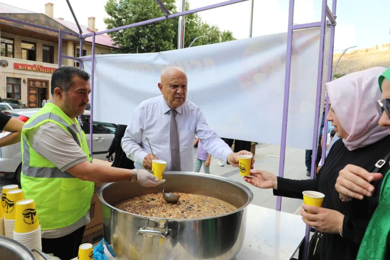 Bayburt Belediye Başkanı Hükmü Pekmezci'nin bizzat katıldığı etkinlikte, hemşehrilerine aşure dağıtma mutluluğu yaşandı. Başkan Pekmezci, Aşure Günü'nün birlik ve beraberliğe vesile olmasını dileyerek yaptığı açıklamada, "Aşure Günü paylaşmanın, kardeşliğin ve dayanışmanın günüdür. İdrak ettiğimiz Muharrem ayı ve Aşure Günü'nün hemşehrilerimize tüm vatandaşlarımıza huzur ve bereket getirmesini dilerim." dedi.