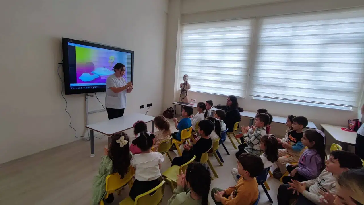 “Sağlıklı Yaşam” başlığı altında gerçekleştirilen eğitimlerde dengeli beslenme, kişisel hijyen, fiziksel aktivite, uyku düzeni, teknoloji bağımlılığı ve zararlı alışkanlıklardan korunma konularında bilgilendirmeler yapıldı.