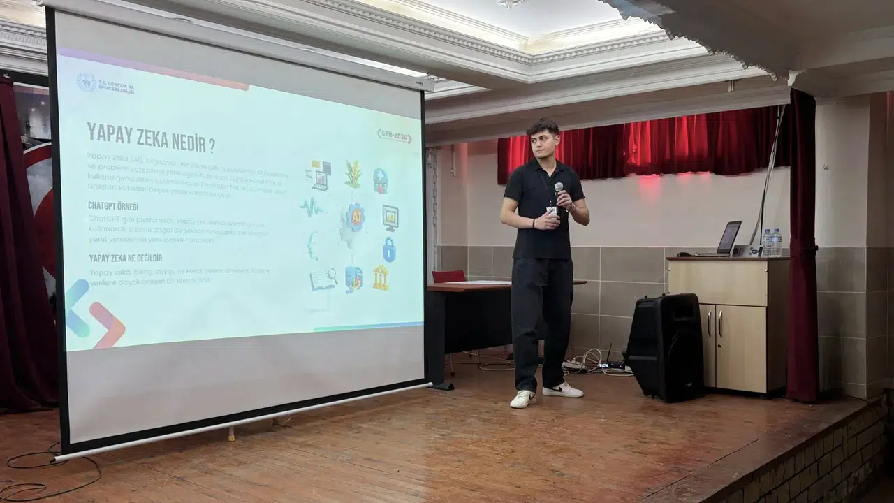 Atölyede gençlere yapay zekânın temel çalışma prensipleri, etik kullanım alanları ve çeşitli yapay zekâ araçları uygulamalı olarak anlatıldı. Program boyunca öğrencilerin dijital becerilerini geliştirmelerine ve teknolojiyi bilinçli kullanmalarına katkı sağlandı.