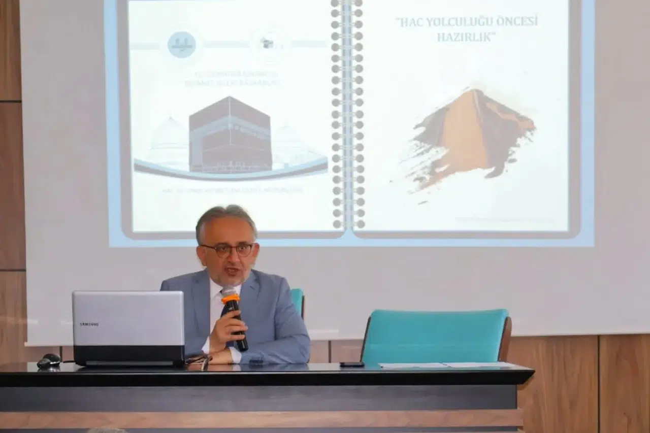 İl Müftüsü Bayram Danacı, hac yolculuğu öncesinde yapılması gereken maddi ve manevi hazırlıklar ile hac ve umrede bir arada yaşama bilincine ilişkin önemli değerlendirmelerde bulundu. Müftü Yardımcısı Nurettin Akgül ise haccın hikmeti, sembollerin anlamı ve hac ile umre menasikleri hakkında bilgi verdi.
