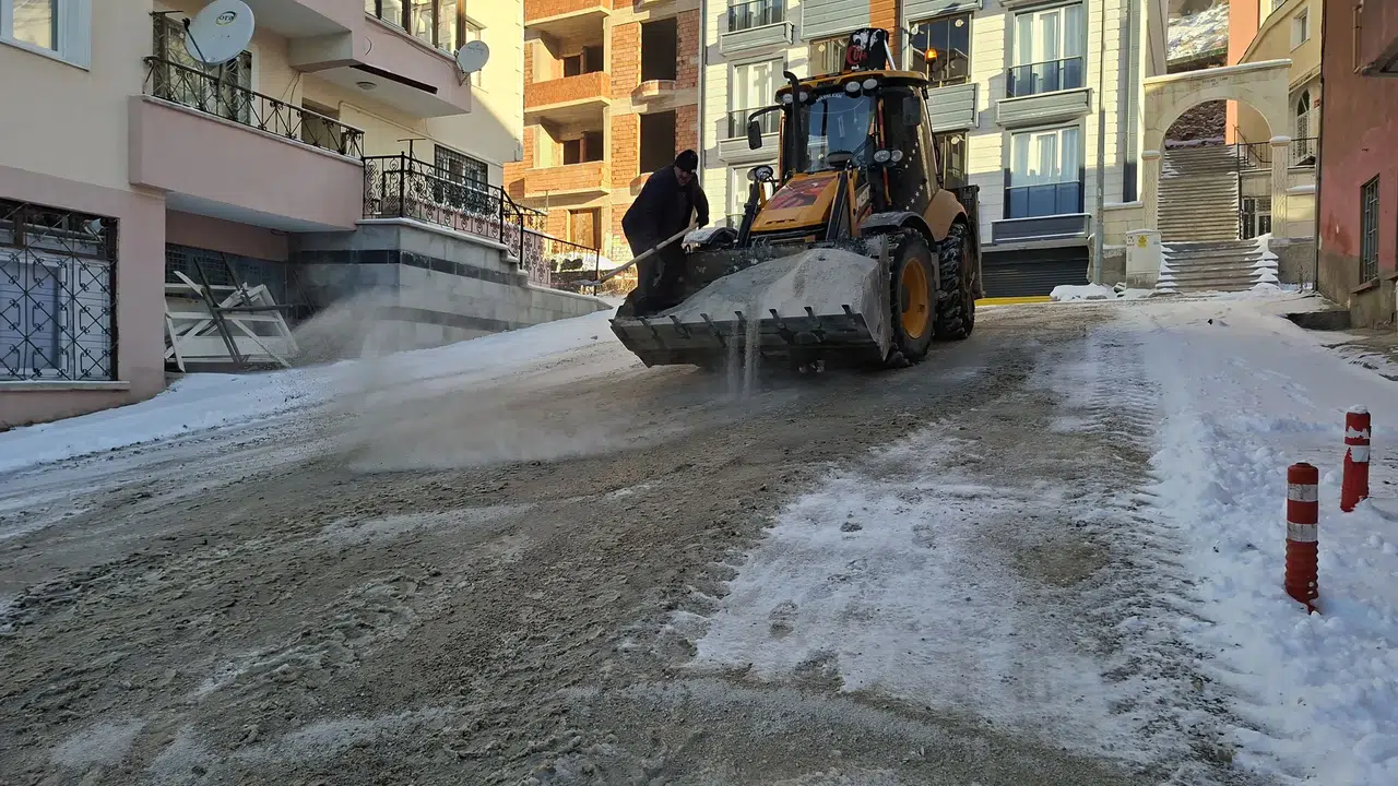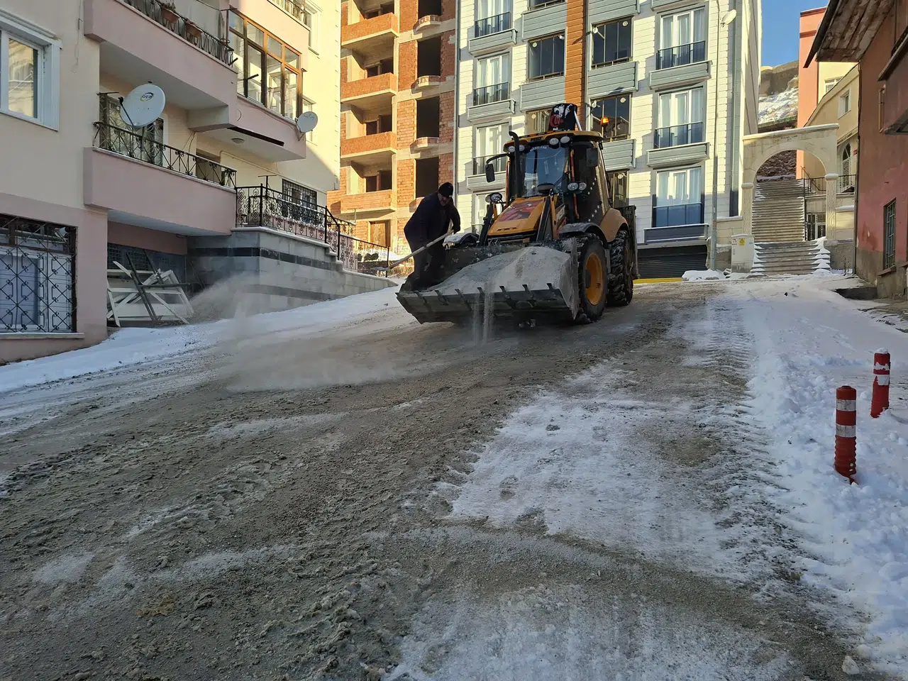 Bayburt'ta kar yağışının ardından belediye ekipleri, yaya ve araç güvenliğini sağlamak için 24 saat çalışarak kaldırımları, merdivenleri ve sokakları temizliyor. Buzlanmalara karşı önlemler alarak ulaşımın aksamaması için yoğun gayret gösteriyorlar.