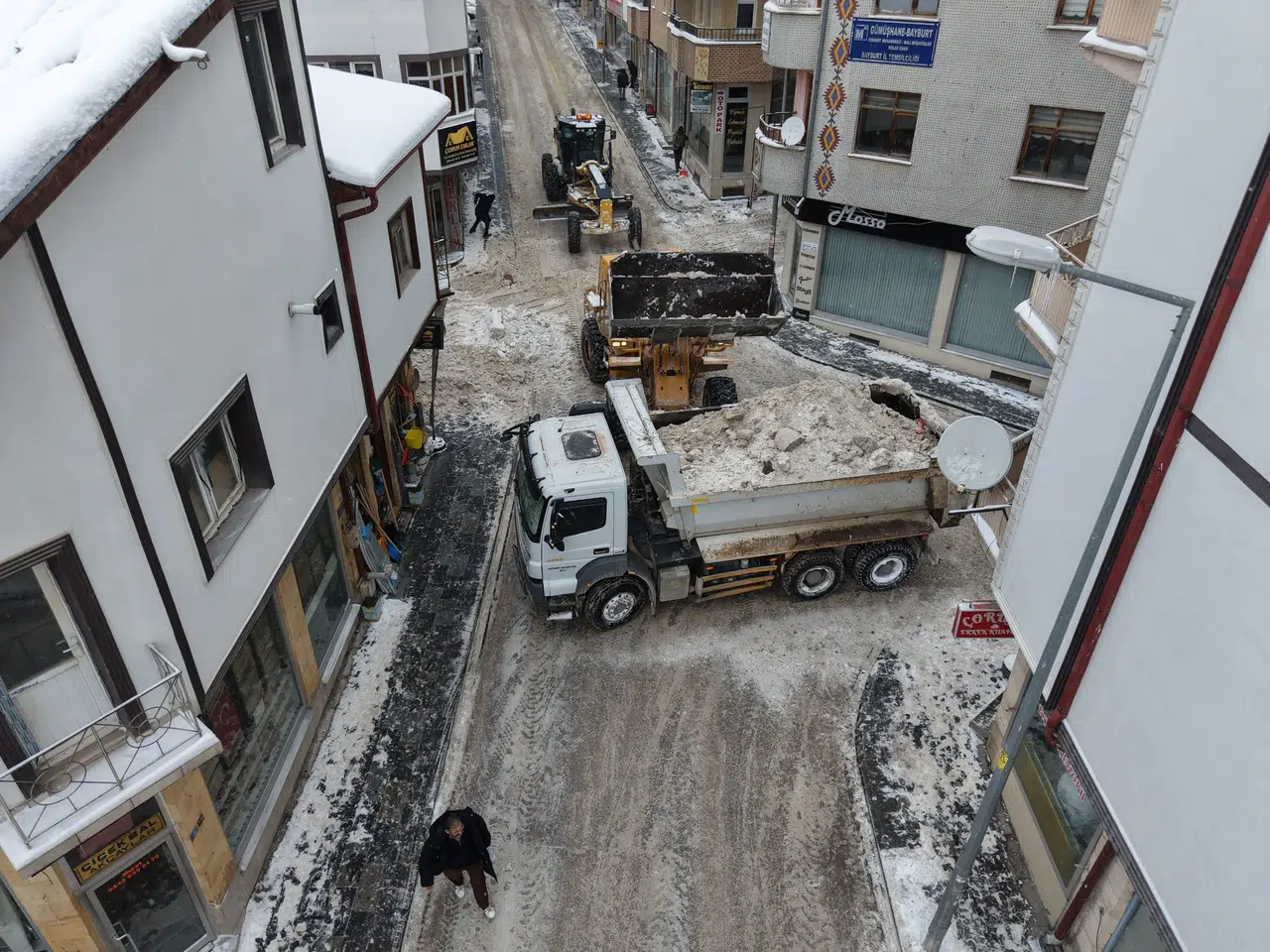 Bayburt Belediyesi, şehir genelinde yürüttüğü karla mücadele çalışmalarını hız kesmeden sürdürüyor. Yaklaşık bir haftadır aralıksız devam eden çalışmalar kapsamında, Semerciler Caddesi başta olmak üzere çevresindeki cadde ve ara sokaklarda ekipler yoğun bir şekilde kar temizliği gerçekleştiriyor.