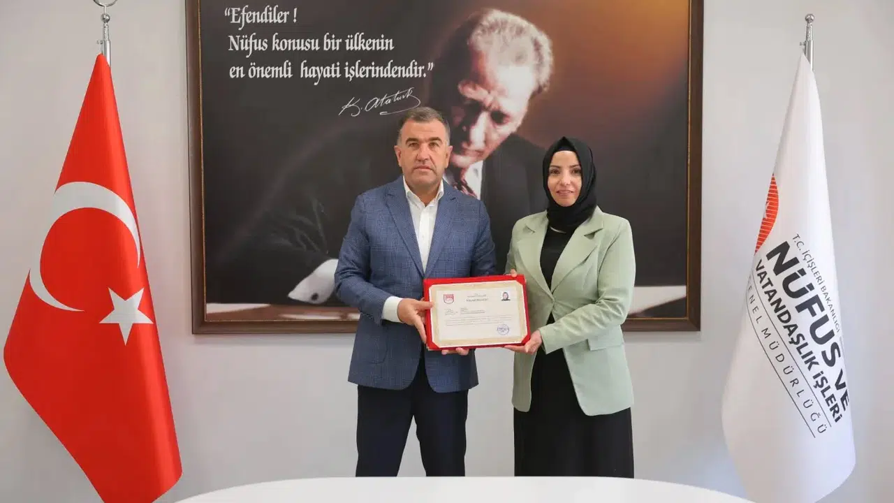 Bayburt'ta Türkiye Cumhuriyeti Kimlik Kartı yenileme sürecinde %99 başarıya ulaşan Nüfus Müdürlüğü personeli, Vali Mustafa Eldivan tarafından ödüllendirildi. Eldivan, vatandaş memnuniyetinin artırılması için kalan %1'lik sürecin de özenle tamamlanması gerektiğinin altını çizdi.