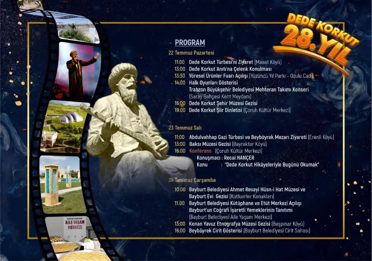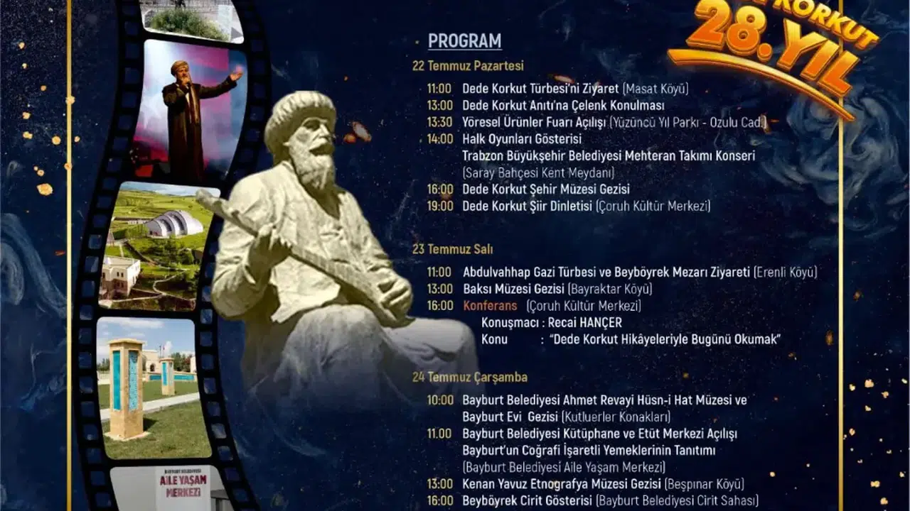 Bayburt'un geleneksel kültürel etkinliklerinden biri olan Uluslararası Dede Korkut Kültür ve Sanat Şölenleri, bu yıl 28. kez düzenleniyor. 22 Temmuz Pazartesi günü başlayacak olan şölenler, kültürel ve sanatsal etkinliklerle dolu bir program sunacak.