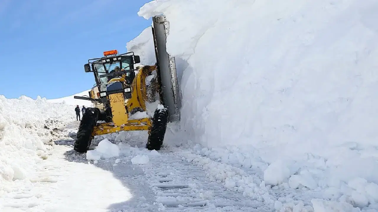 Zorlu doğa koşullarında 12 Nisan'dan beri çalışma yürüten ekipler, kar kalınlığının yer yer iş makinesinin boyunu aştığı noktalarda güçlükle ilerleyebiliyor.