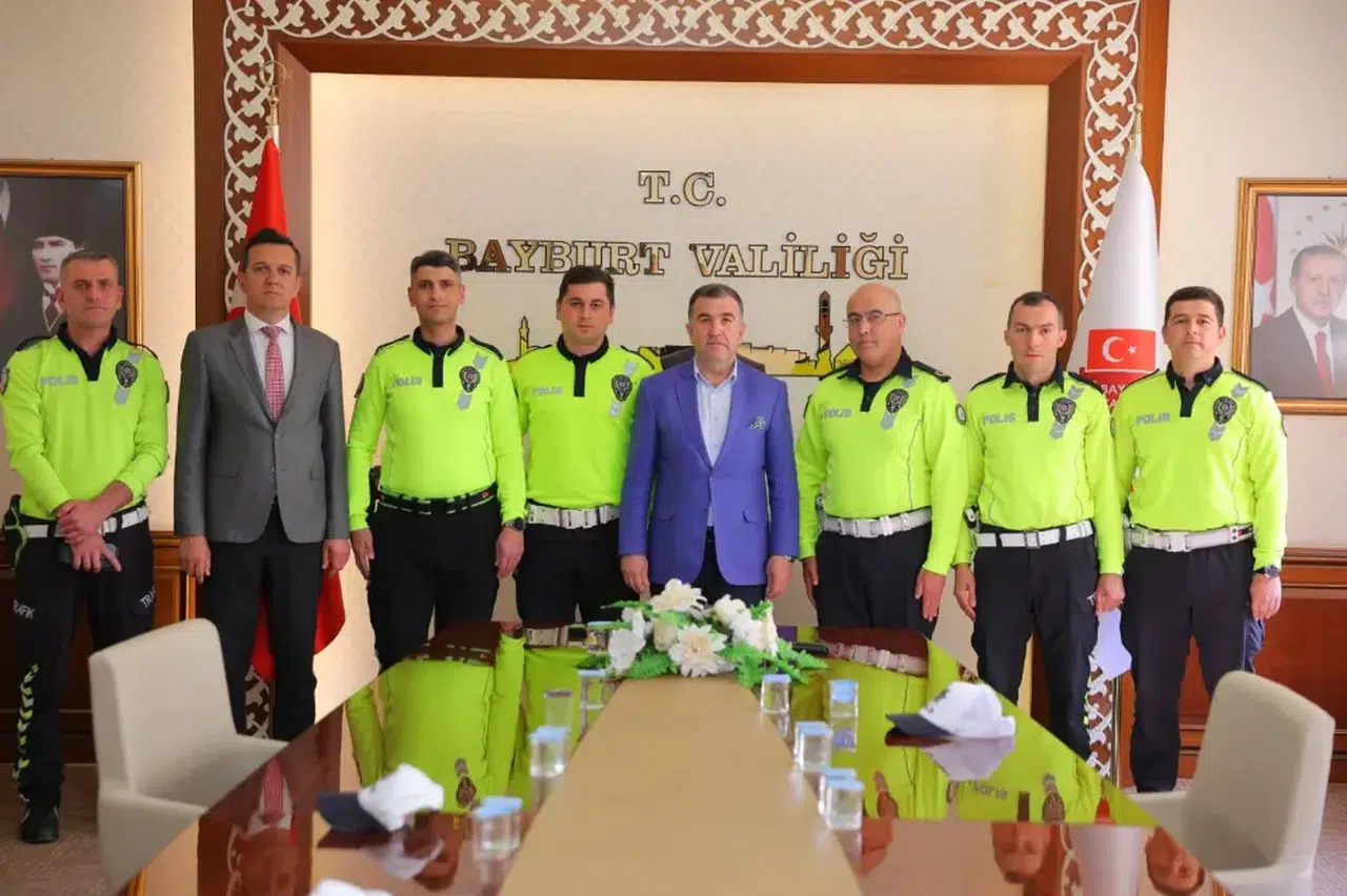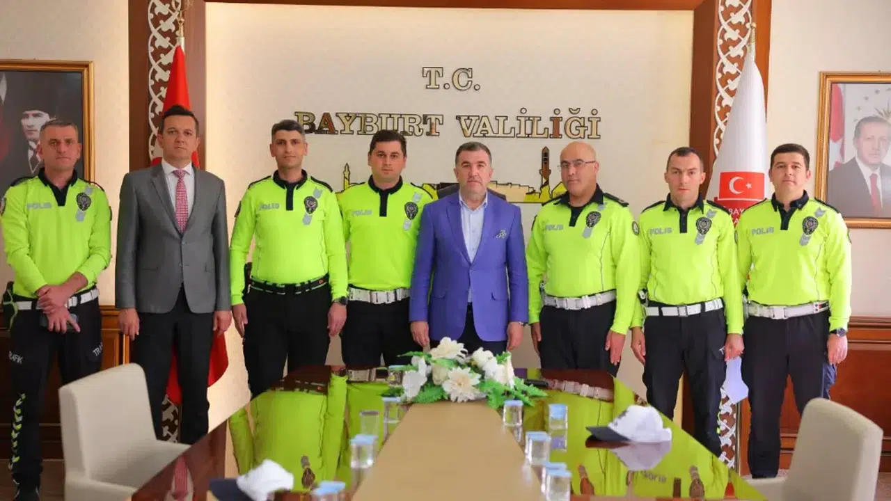 Bayburt Valiliği'nde düzenlenen ödül töreninde, trafik düzeni ve vatandaşların güvenliği için üstün gayret gösteren emniyet personeline teşekkür eden Vali Eldivan, trafik güvenliğinin sadece emniyet güçlerinin değil, toplumun her kesiminin ortak sorumluluğu olduğunu vurguladı.