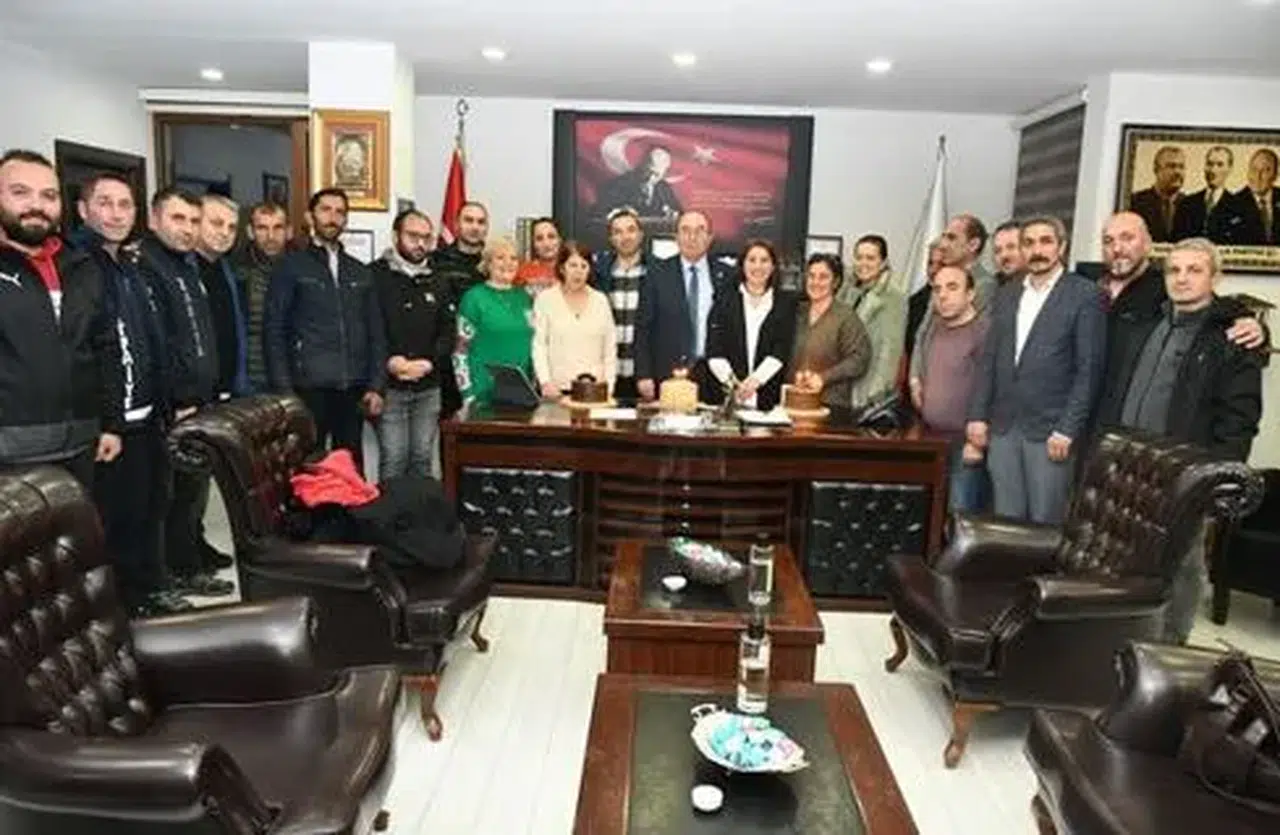 Belediye Başkanı Sayın Demirhan Elçin, başkanlık makamında düzenlenen sıcak bir buluşma ile doğum günü olan çalışma arkadaşlarıyla bir araya geldi.