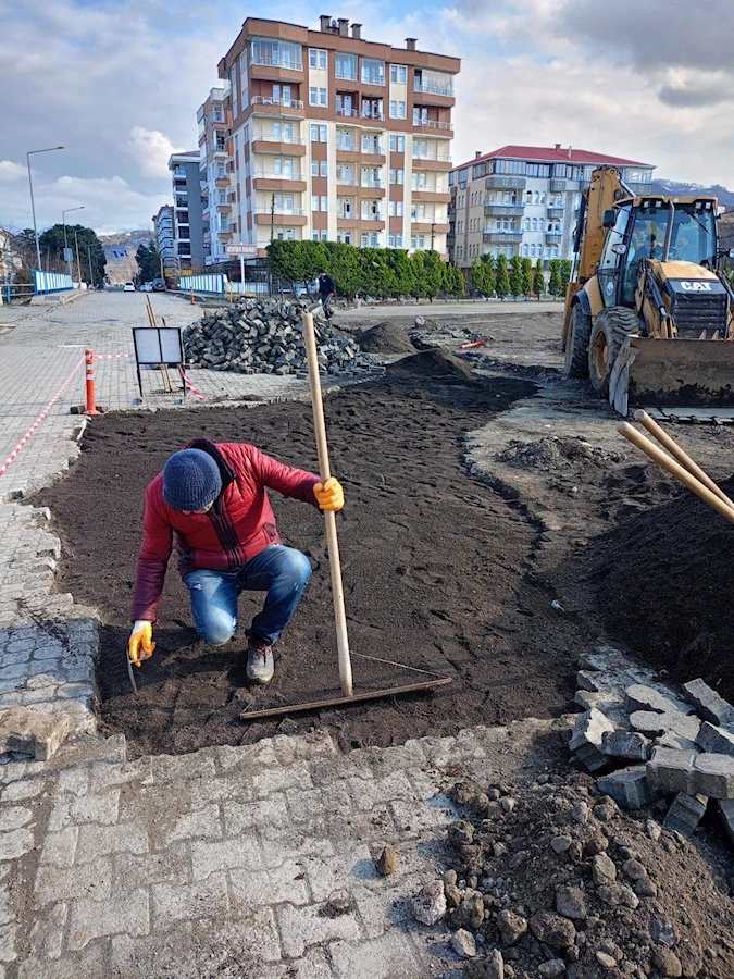 İlçe Merkezinde doğalgaz çalışmaları nedeniyle bozulan zemin üzerinde bakım ve onarım çalışmaları gerçekleştiriliyor.