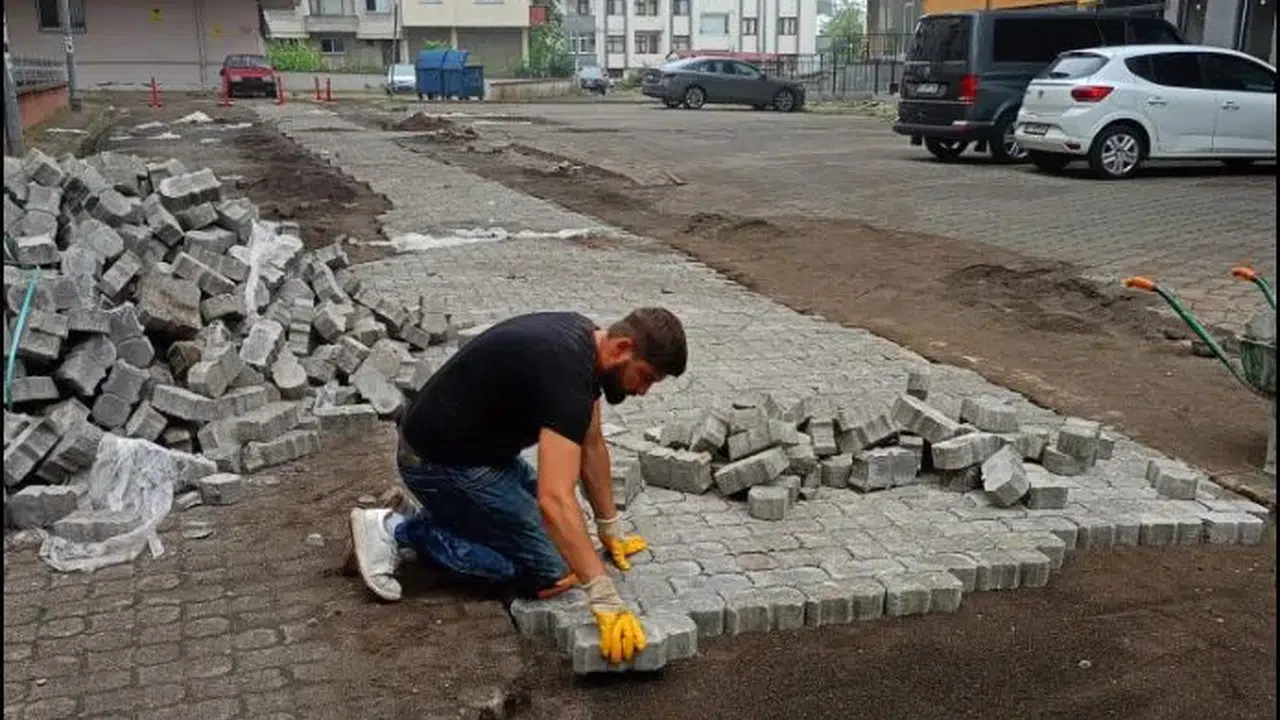Trabzon’un Beşikdüzü ilçesinde, doğalgaz altyapı çalışmaları nedeniyle bozulan zeminlerde parke yenileme çalışmaları devam ediyor.