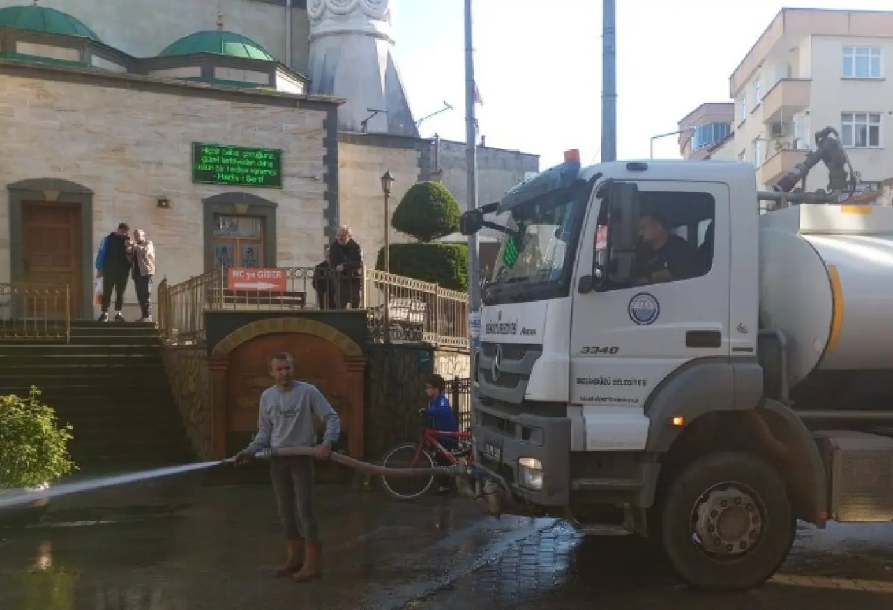 Trabzon’un Beşikdüzü ilçesinde belediye ekipleri tarafından yürütülen yıkama ve temizlik çalışmaları aralıksız devam ediyor. İlçe merkezinde sürdürülen çalışmalar kapsamında cadde ve sokaklar detaylı şekilde temizlenirken, çevre düzenine de büyük önem veriliyor.