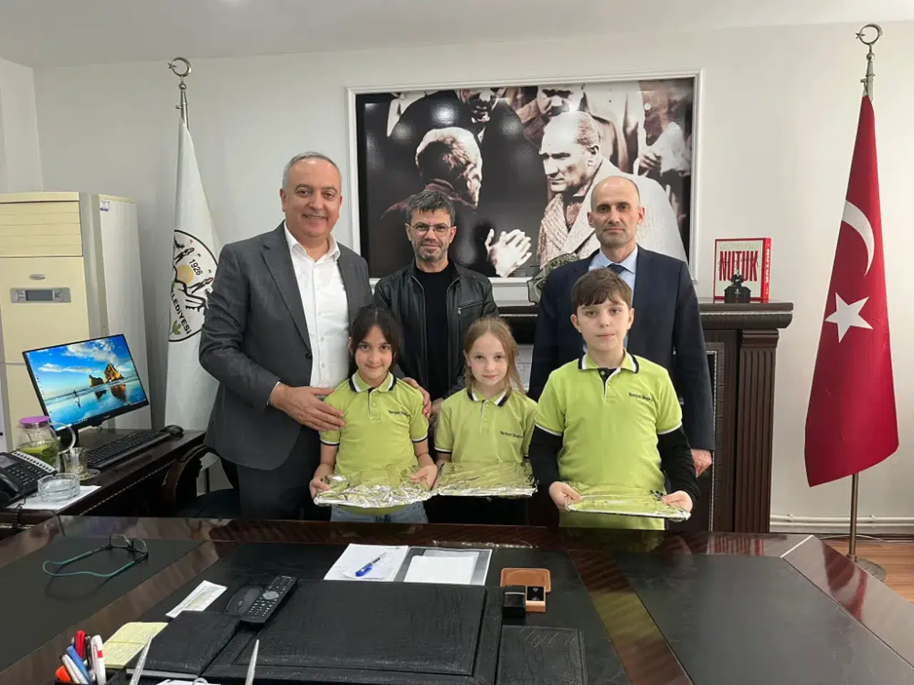23 Nisan Ulusal Egemenlik ve Çocuk Bayramı dolayısıyla Borçka’da minik öğrenciler, Belediye Başkanı Ercan Orhan’ı makamında ziyaret etti. Çocuklar, bayram sevincini paylaşırken, Borçka için hayal ve önerilerini Başkan Orhan’a ileterek makamı neşeyle doldurdu.