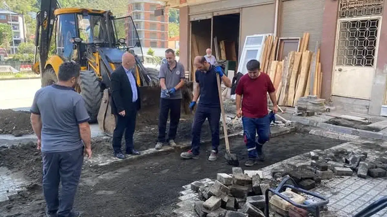 Çarşıbaşı'nda doğalgaz sonrası yol onarımları hızla sürdürülüyor, modern altyapı için taş döşeme çalışmaları başladı