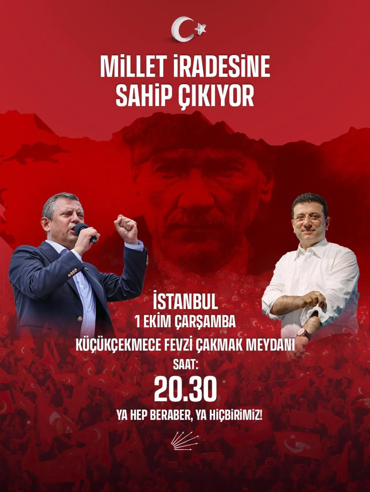 Eylem, 1 Ekim Çarşamba günü saat 20.30’da Küçükçekmece Fevzi Çakmak Meydanı’nda gerçekleştirilecek. CHP yetkilileri, etkinliğe katılımın yüksek olmasını beklediklerini ifade ederek, halkı demokrasi ve adalet mücadelesine destek vermeye çağırdı.
