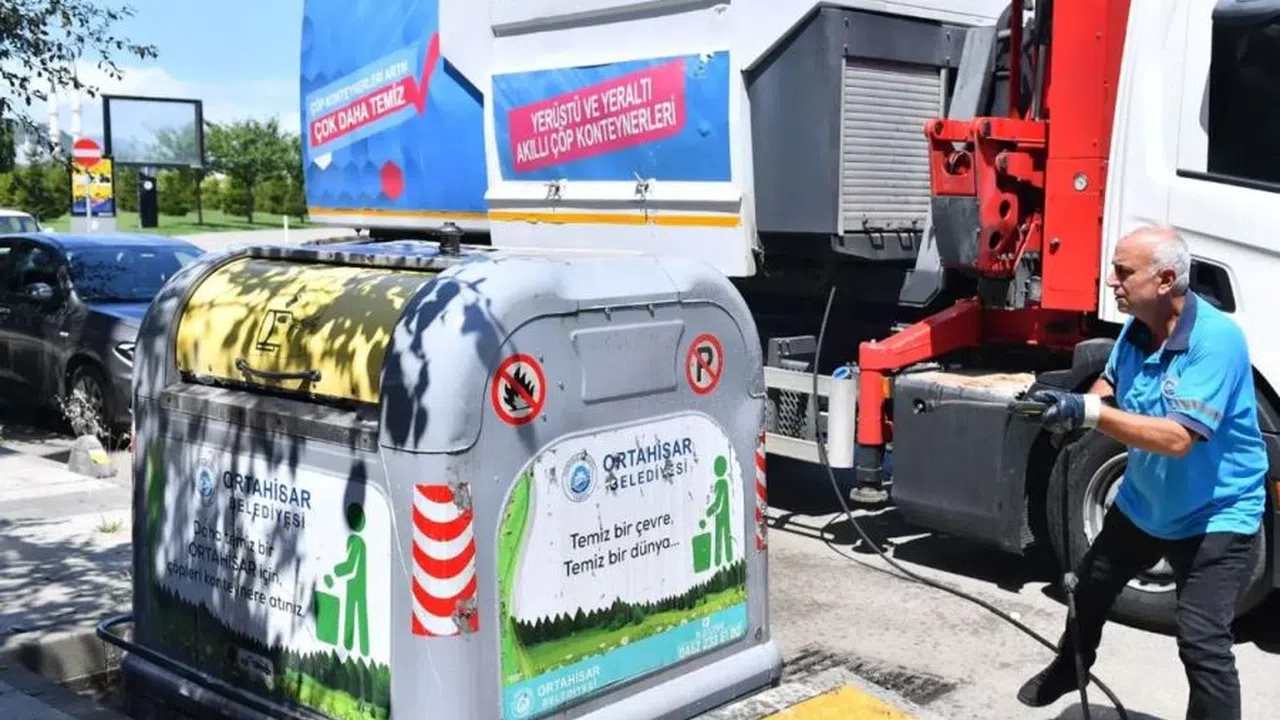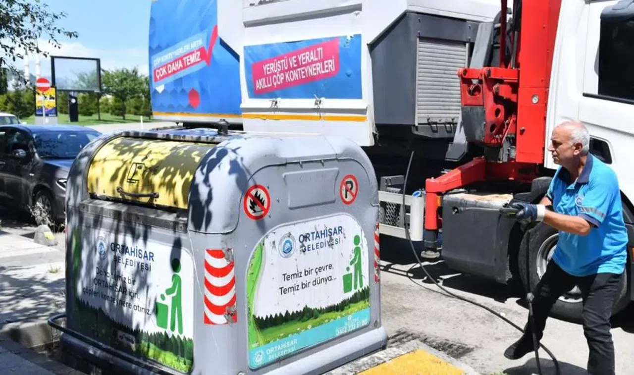 Ortahisar Belediyesinden yapılan yazılı açıklamada, Temizlik İşleri Müdürlüğü ekiplerince yeraltındaki 54 ve yer üstündeki 96 çöp konteynerinin yıkandığı belirtildi.