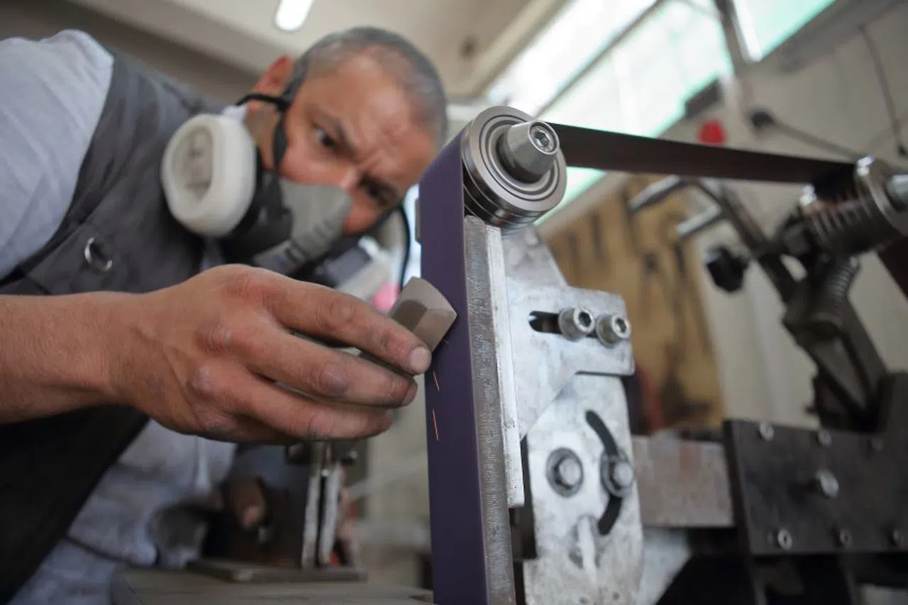 Ustalar, bilemenin yanı sıra vatandaşların getirdiği kırık bıçakları onarıyor.