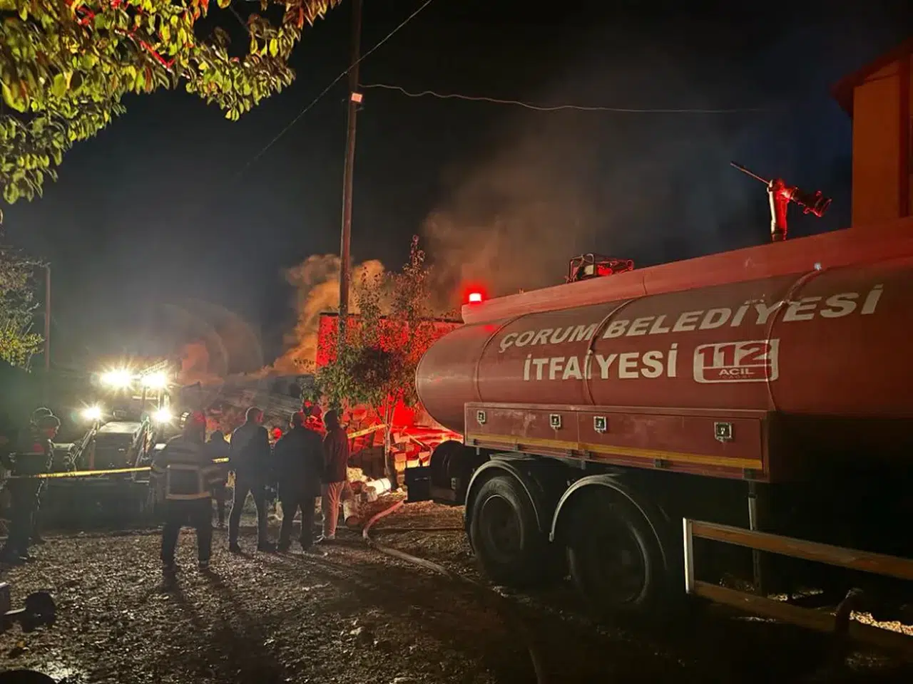 Çorum Belediyesi itfaiye ekipleri yangına müdahale ediyor.