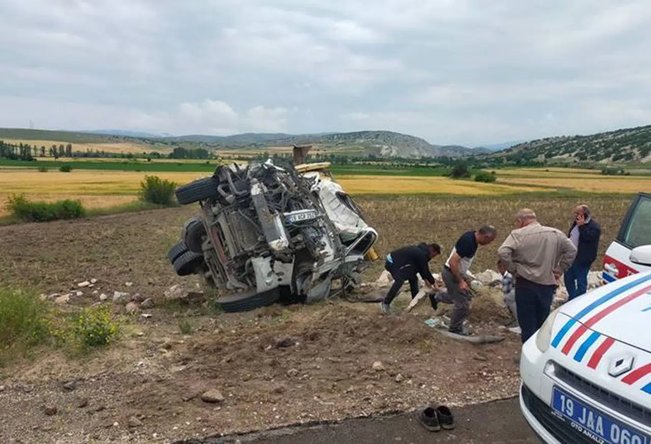 Çorum'da devrilen hafriyat kamyonunun sürücüsü yaralandı.