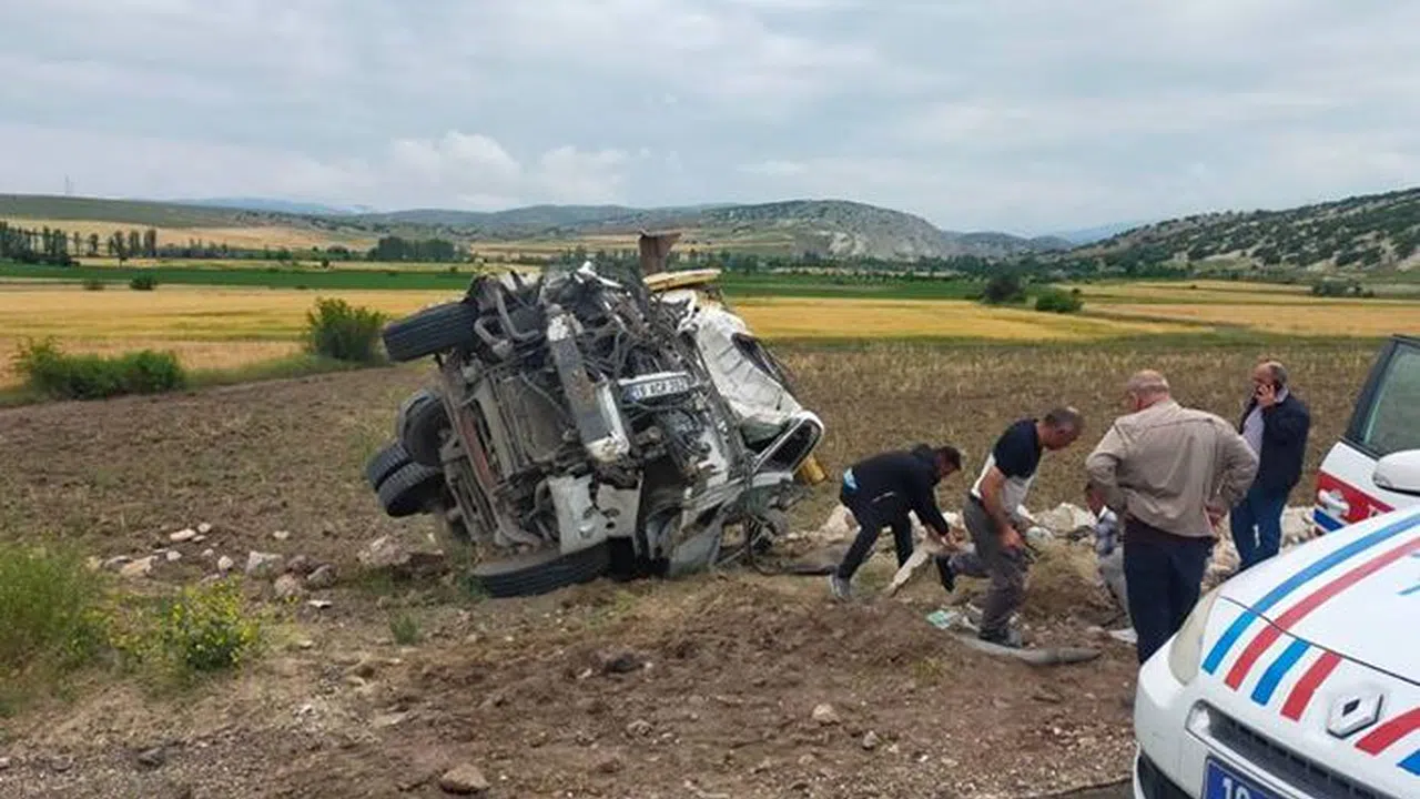 Çorum'da devrilen kamyonun sürücüsü yaralandı!