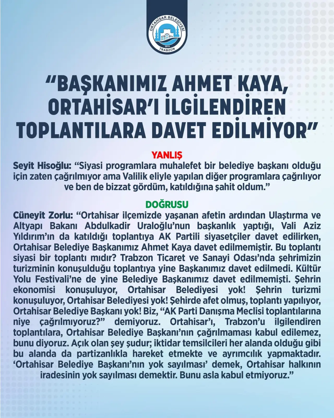 Yapılan açıklamada, belediyenin hiçbir ayrım gözetmeden Trabzon halkına hizmet sunduğu ve şehrin gelişimi için tüm birimlerin koordineli şekilde çalıştığı ifade edildi.