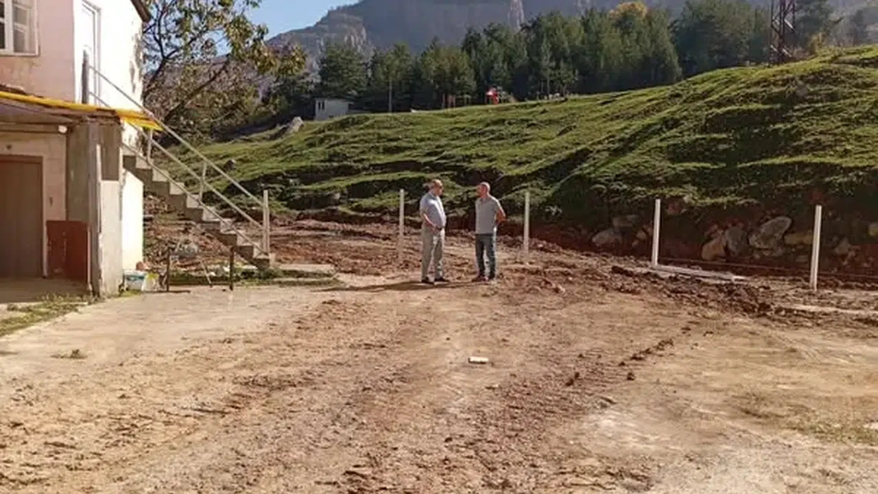 Daha önce direkleri sabitlenip kurumaya bırakılan alanın etrafına bugün itibarıyla çit çekilmeye başlanırken, çalışmanın kısa sürede tamamlanması hedefleniyor.
