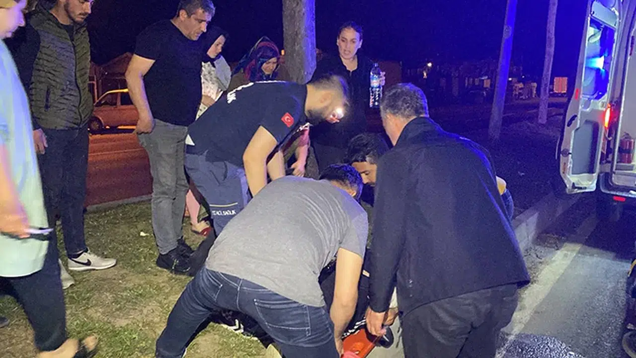 Yolda sürüklenerek yaralanan motosikletin sürücüsü, Düzce Üniversitesi Tıp Fakültesi Eğitim Araştırma ve Uygulama Hastanesi'ne kaldırıldı.