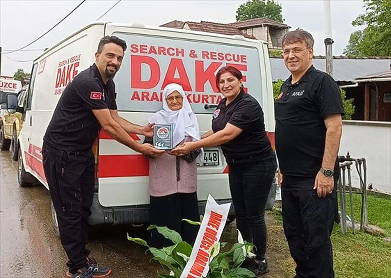 Aracın, DAKE'nin faaliyetlerinde kullanılmak üzere hazır hale getirilmesinin ardından Demirağ'ın yaşadığı köye gelen AFAD Düzce İl Müdürü Ali Kartal ve DAKE gönüllüleri, plaket ve çiçek verdi.