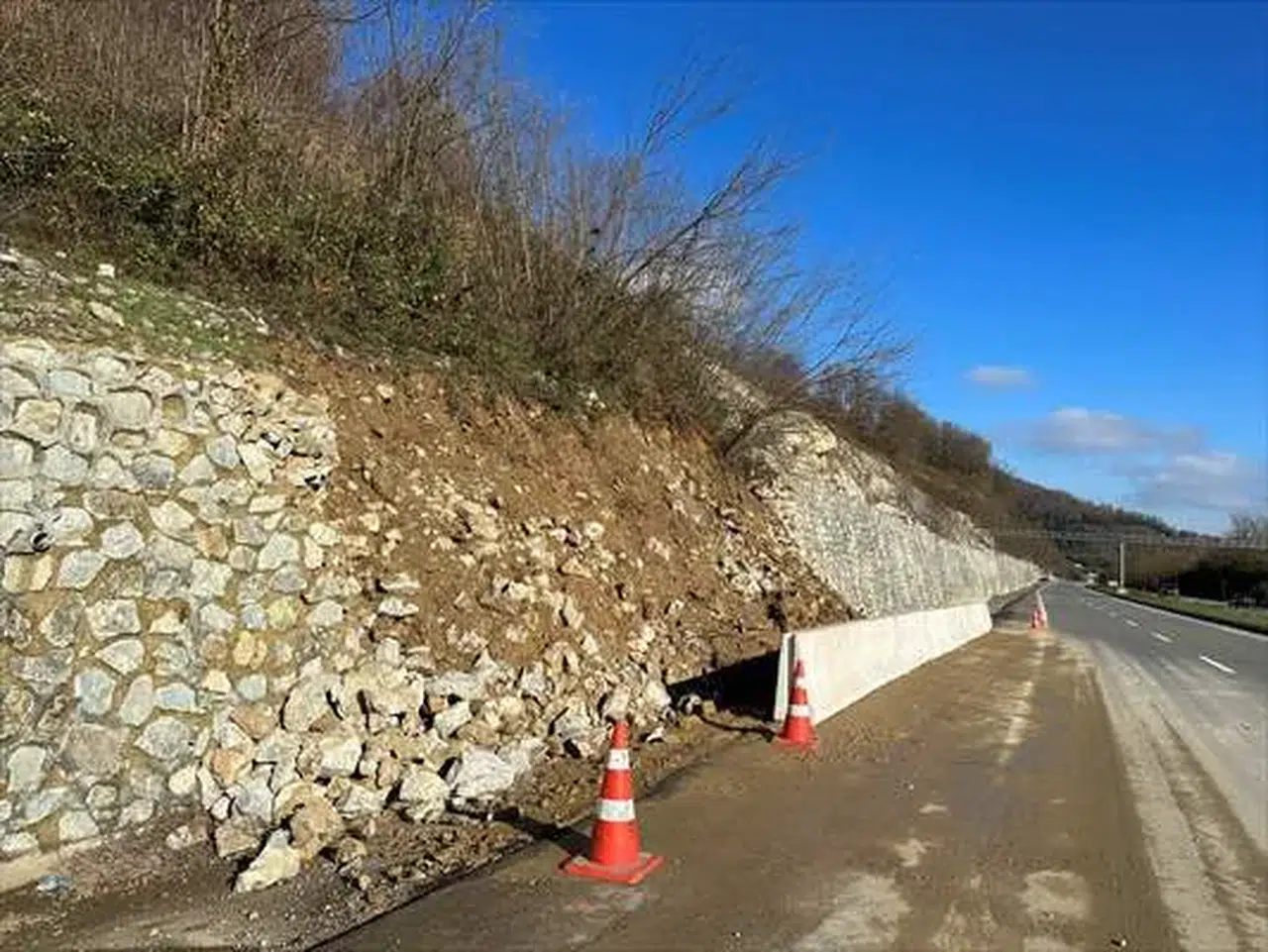 Kent genelinde dün akşam saatlerinde etkili olan sağanağın ardından Kalıcı Konutlar mevkisinde istinat duvarı çöken Gölyaka bağlantı yolunda çalışmalar tamamlandı.