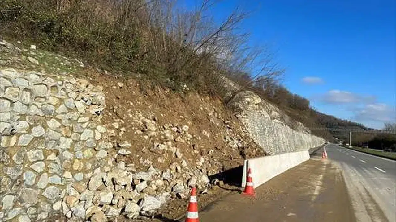 Karayolları ekipleri, yola toprak kayması ve yeni bir çökme ihtimaline karşı beton bariyer koyarak önlem alırken, kapalı şeritteki temizlik çalışmalarını da bitirdi.