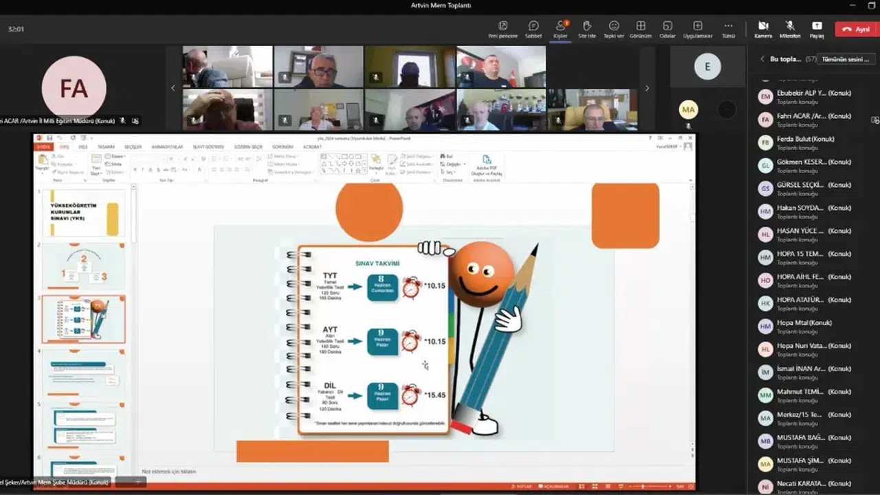 Değerlendirmelerin ardından, 8-9 Haziran 2024 tarihlerinde ÖSYM tarafından gerçekleştirilecek Temel Yeterlilik Testi (TYT) ve Yükseköğretim Kurumları Sınavı (YKS) hakkında bilgi verildi. Acar, sınav kurallarına da kısaca değinerek, ilde sınava katılacak tüm öğrencilere başarı dileklerini iletti.