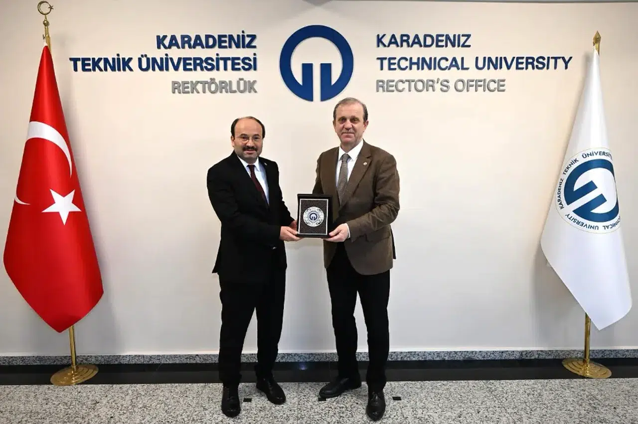 Erzurum Teknik Üniversitesi Rektörü Prof. Dr. Bülent Çakmak, Karadeniz Teknik Üniversitesi (KTÜ) Rektörü Prof. Dr. Hamdullah Çuvalcı’ya nezaket ziyaretinde bulundu. Ziyaret, KTÜ Rektörlük makamında gerçekleşti ve iki üniversite arasında potansiyel iş birlikleri hakkında verimli görüşmeler yapıldı. Görüşmelerde, ortak projeler, bilimsel araştırmalar ve eğitim alanındaki iş birliği fırsatları değerlendirildi. KTÜ Rektörü Prof. Dr. Hamdullah Çuvalcı, üniversitelerinin Araştırma Üniversitesi unvanına sahip olduğunu belirterek, yürütülen bilimsel çalışmaların bölgeye ve ülke genelinde önemli katkılar sunduğunu ifade etti. Çuvalcı, Erzurum Teknik Üniversitesi ile her türlü ortak proje ve araştırma faaliyetinin destekçisi olacaklarını vurguladı. Rektör Prof. Dr. Bülent Çakmak, misafirperverliği için Prof. Dr. Hamdullah Çuvalcı’ya teşekkür ederken, iki üniversite arasındaki iş birliğinin artırılması için atılacak adımları sabırsızlıkla beklediklerini belirtti. Ziyaretin ardından, her iki rektör arasında hediye takdimi yapılarak hatıra fotoğrafı çekildi.