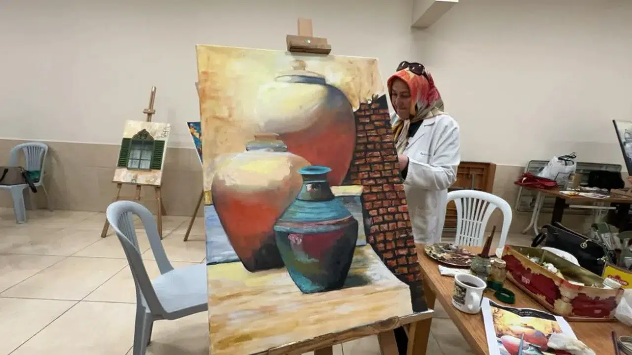 Kursiyerlerden Ayla Pekbüyük ise emekli olup 4 torun büyüttükten sonra sosyal yaşam amaçlı resim kursuna geldiğini ifade ederek, “Buradaki öğrendiğim tekniklerle köye gidip kendi başıma manzara resmi yapmak istiyorum” şeklinde konuştu.