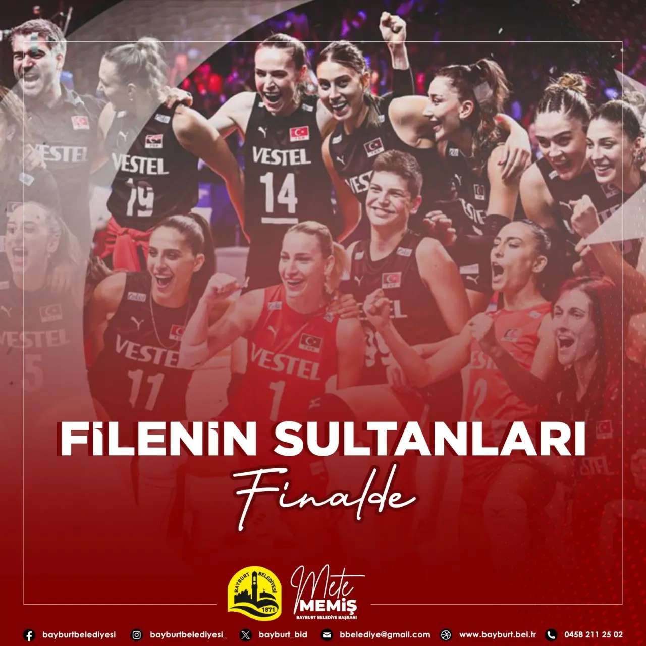 Bayburt Belediyesi, sosyal medya hesabından yaptığı paylaşımda milli takımımızı tebrik etti. Belediyenin paylaşımında, “Finaldeyiz! Filenin Sultanları, gurur kaynağımız oldunuz. Yolun sonu şampiyonluk olsun!” ifadeleri yer aldı. Belediye yetkilileri, bu tarihi başarının sadece spor alanında değil, ülkemizin ulusal gururunu da yansıttığını vurguladı.