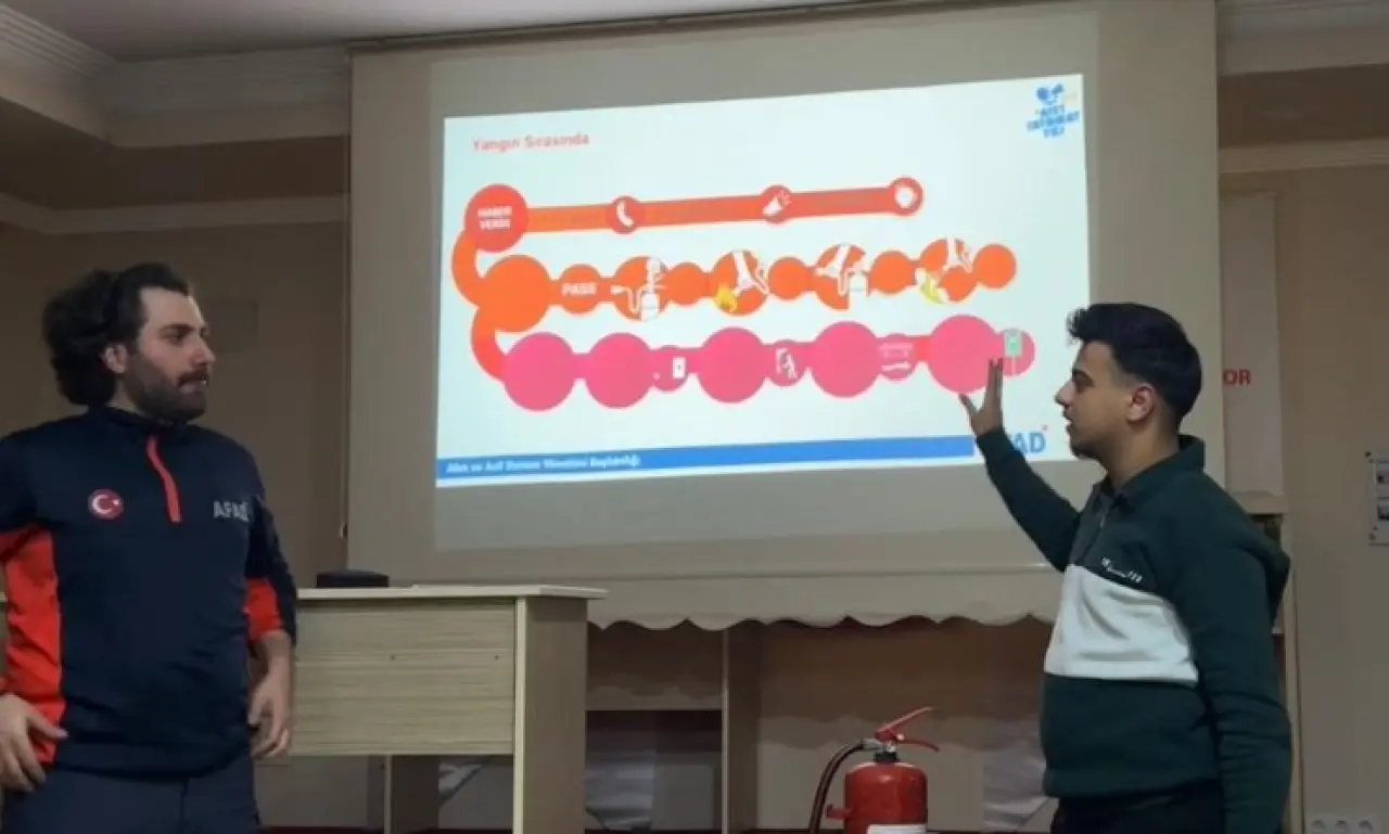 Hamdi Efendi Yurdu’nda AFAD iş birliğiyle düzenlenen eğitimde, katılımcılara afet anında müdahale, arama kurtarma ve kriz yönetimi konularında bilgi verildi.