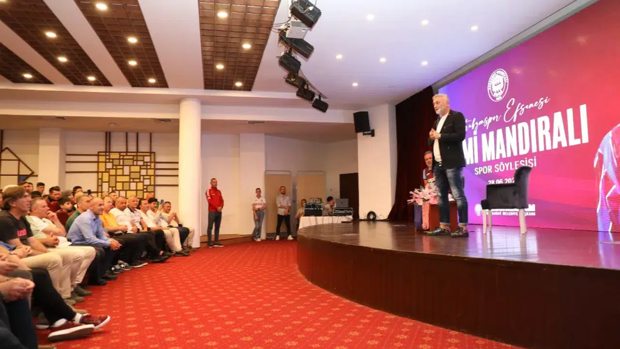 Moderatörlüğünü Bülent Mumcu'nun yaptığı söyleşide Hami Mandıralı, spor kariyerinin başlangıcını, Trabzonspor'da nasıl efsane haline geldiğini, kariyeri boyunca edindiği deneyimleri ve çalışma disiplinini anlattı. Disiplinli çalışmanın başarıya nasıl ulaştırdığını vurgulayan Mandıralı, genç sporculara da öğütlerde bulundu.