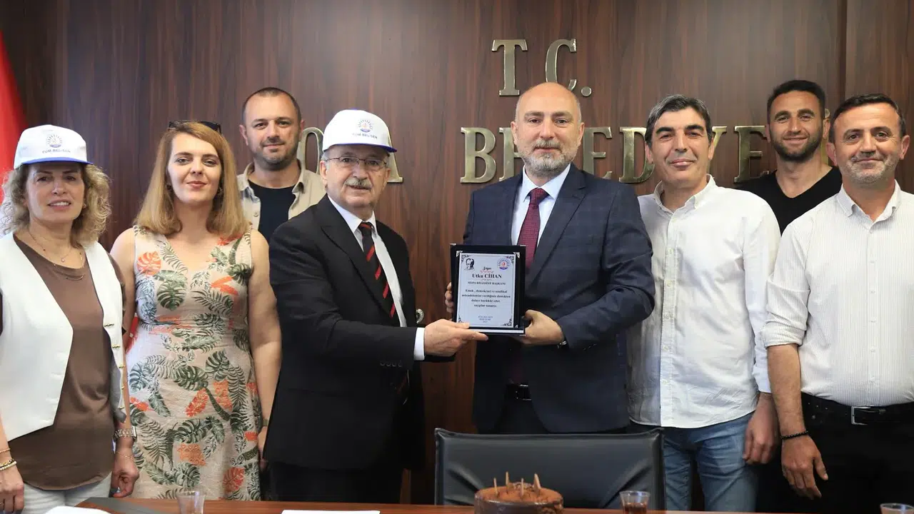 İmza töreninde Başkan Utku Cihan’a, TÜM-BEL-SEN Rize Şube Başkanı Ömer Salih Erol tarafından bir plaket takdim edildi.