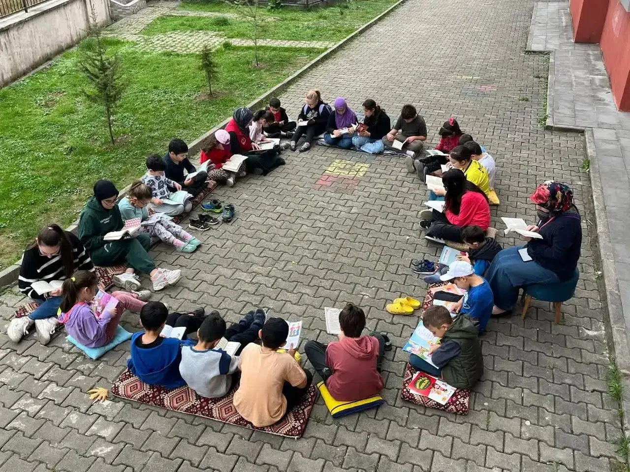 Bu kez gençler, kitaplarını merkez bahçesinde, açık ve güneşli havanın tadını çıkararak okudu. Doğanın içinde gerçekleştirilen etkinlik, katılımcılara sakin ve verimli bir okuma deneyimi sundu.