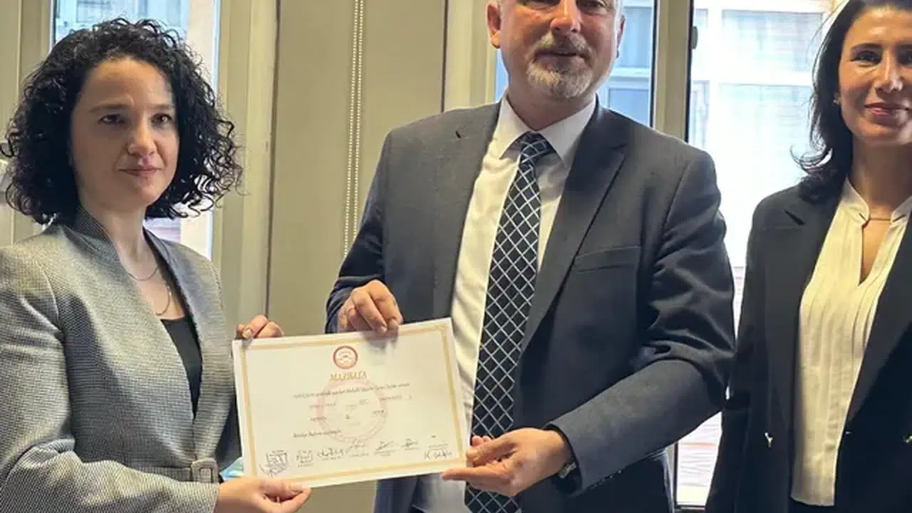 Hopa Adliyesi'ne gelen Cihan, mazbatasını İlçe Seçim Kurulu Başkanı Filiz Aladağ'dan aldı.