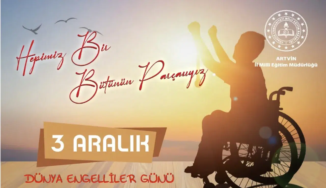 Başta ilimizde eğitim görmekte olan özel gereksinimli öğrencilerimiz ve aileleri ile kurumumuzda çalışan özel gereksinimli bireylerimiz olmak üzere, tüm özel gereksinimli vatandaşlarımızın 3 Aralık Engelliler Günü'nü kutlar saygılar sunarım.