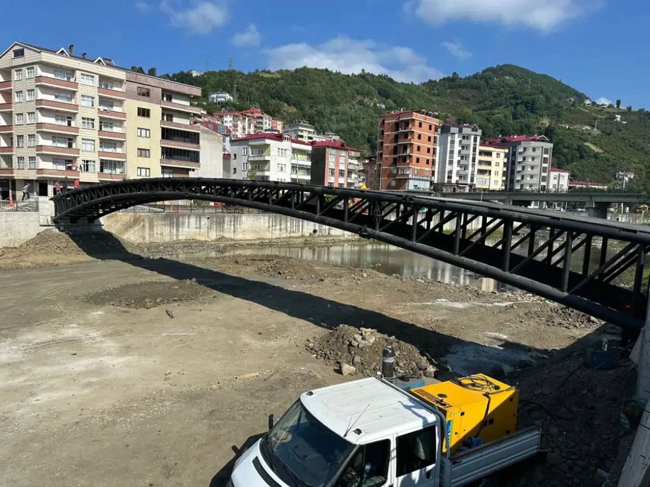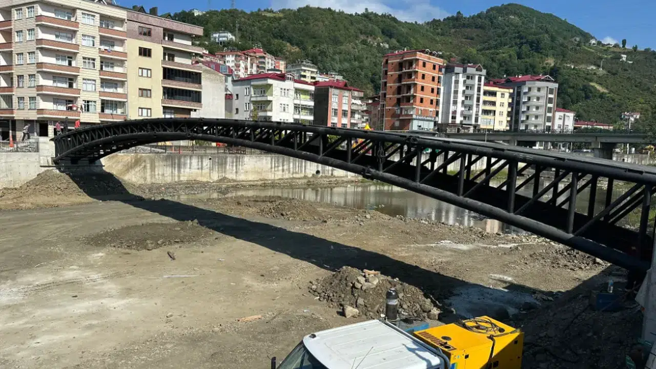 Trabzon'un Çarşıbaşı ilçesinde İskefiye Deresi üzerine inşa edilen yaya köprüsünün montaj çalışmaları tamamlandı. Devlet Su İşleri (DSİ) 22. Bölge Müdürlüğü tarafından yürütülen proje kapsamında, köprü 46 metre açıklık ve 3,25 metre genişliğinde inşa edildi.