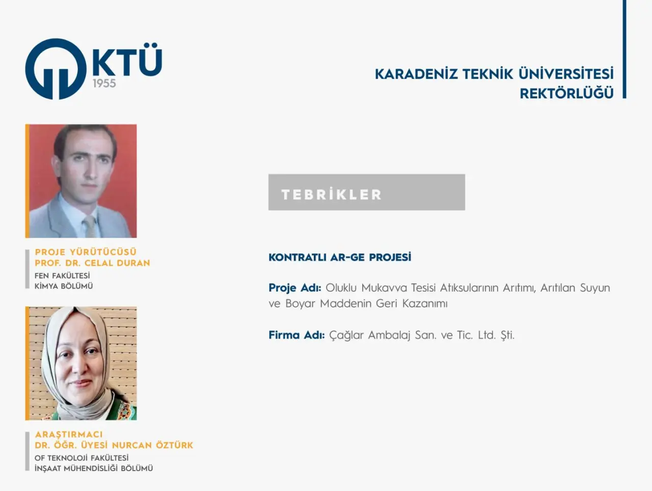 Karadeniz Teknik Üniversitesi (KTÜ), sanayi ve üniversite arasındaki iş birliğine önemli bir katkı sunan yeni bir proje geliştirdi. "Kontratlı Ar-Ge Projesi", Çağlar Ambalaj San. ve Tic. Ltd. Şti. tarafından finanse edilerek, üniversitenin akademisyenlerinden Prof. Dr. Celal DURAN'ın liderliğinde başlatılıyor. Dr. Öğr. Üyesi Nurcan ÖZTÜRK ise proje ekibinde araştırmacı olarak görev alıyor.