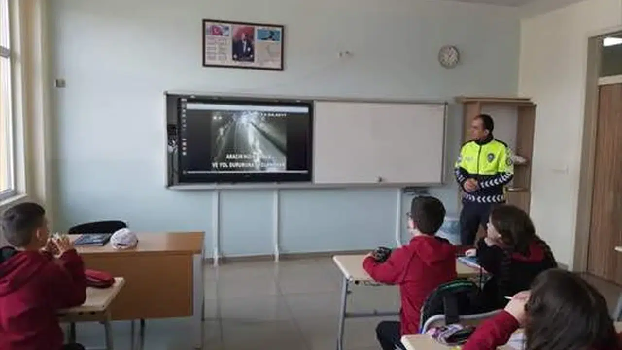 Kastamonu'da polis ekipleri, ortaokul öğrencilerine trafik eğitimi verdi.