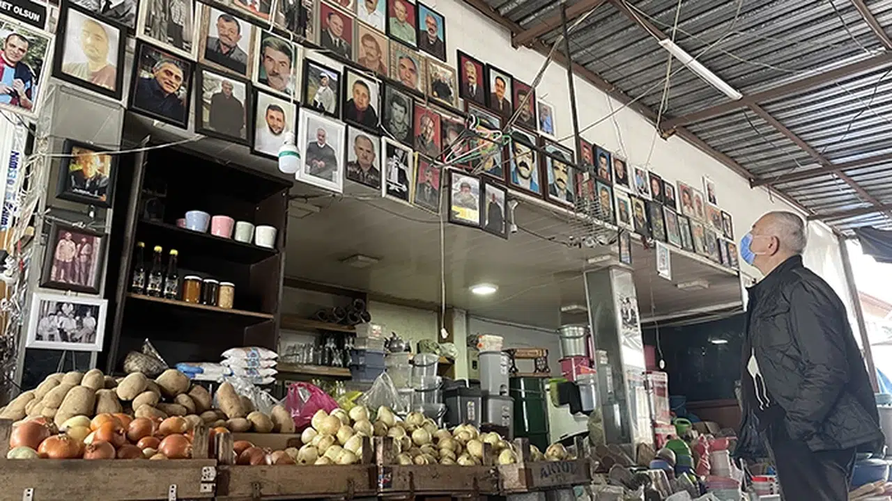 Zonguldak'ta yaşayan Şenol Aydın, kaybettiği sevdiklerini, dükkanına astığı fotoğraflarla yad ediyor.