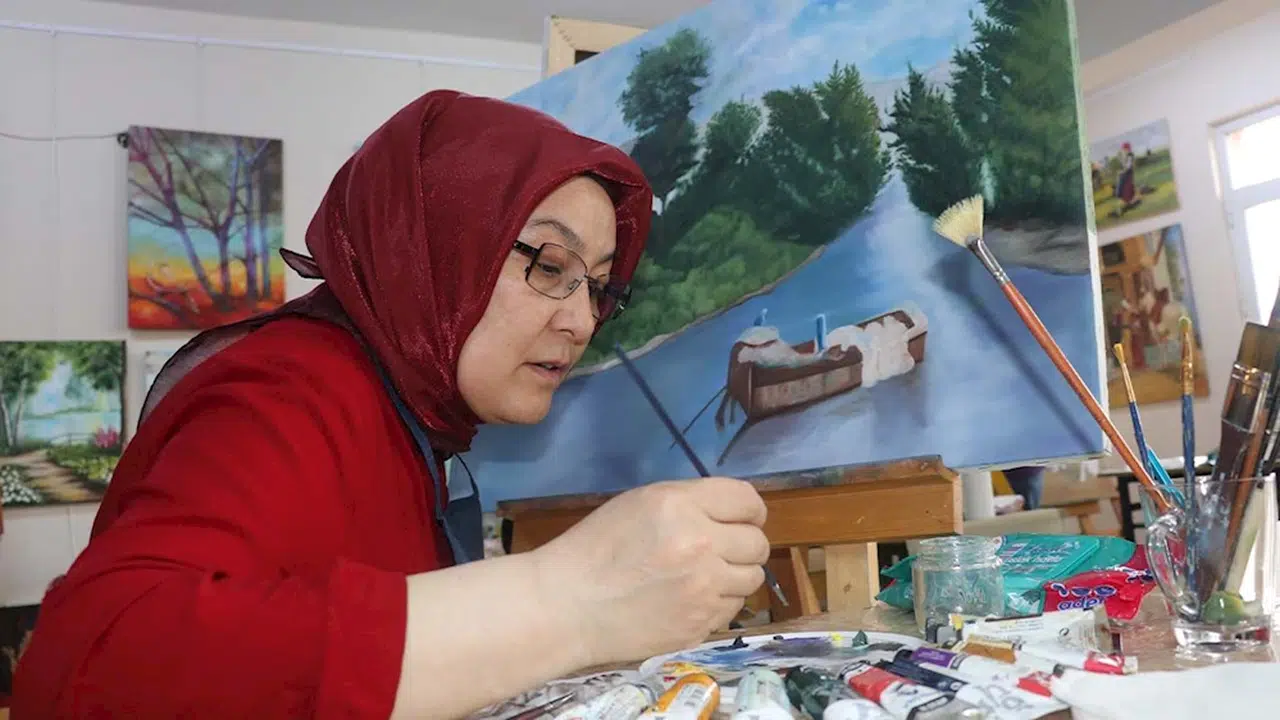 Sağlık sorunları nedeniyle 2 yıl önce geldiği Trabzon'da oturma izni alarak yaşamaya başlayan 53 yaşındaki Maliha Hassan, Halk Eğitim Merkezi kurslarında önce Türkçeyi ardından resim yapmayı öğrendi.